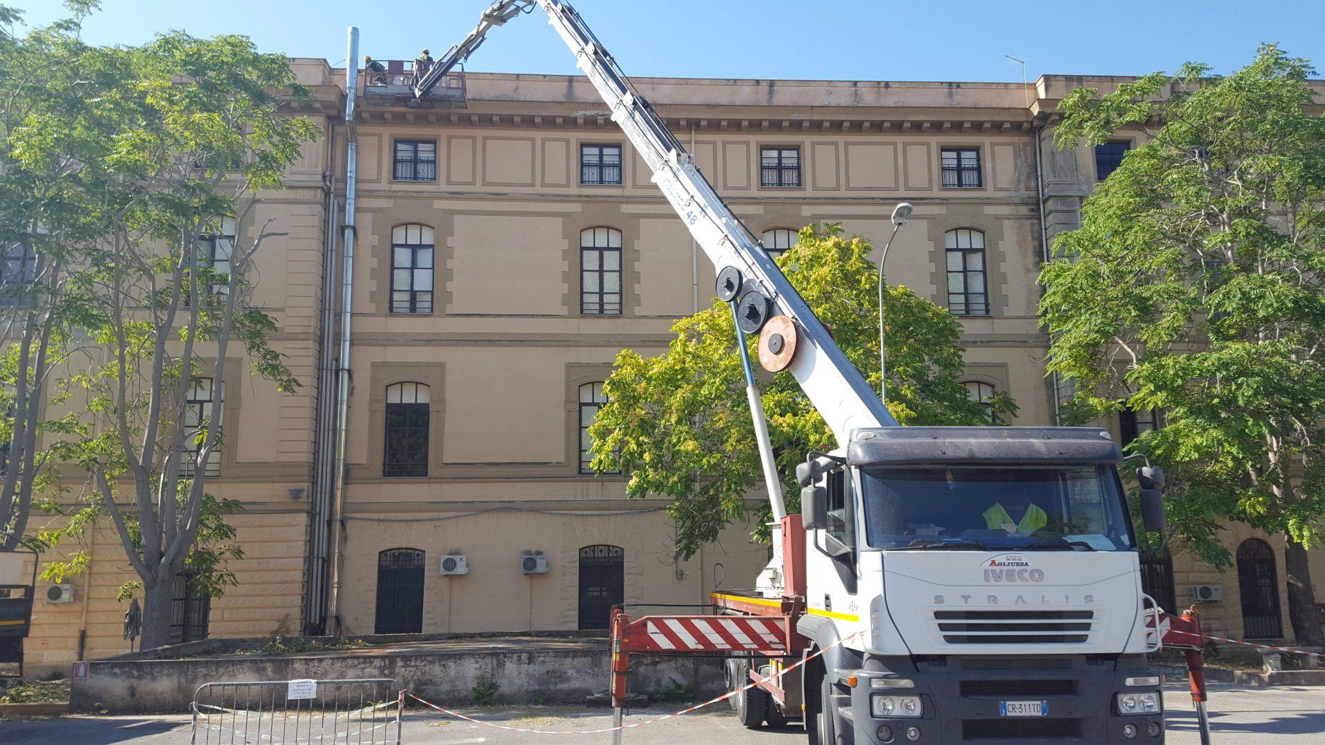 Interventi con piattaforme aeree per la messa in sicurezza degli edifici a Palermo